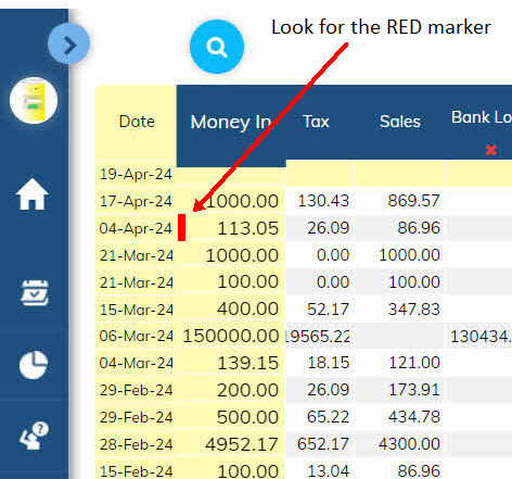 You may receive other forms of money. If your receipt of money is NOT for sales (or Income) then you should describe the transaction to identify it and record the transaction under a column header other than "Sales". Otherwise you run the risk of the transaction being treated as Income and you'll end up paying tax on it. If the transaction is not income, then ensure a column identifies it as such and make sure the column "X" is engaged.